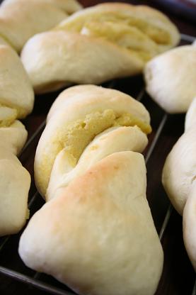今日のパンは「おさつツイスト」。さつまいものペーストを包んでねじっただけなのに、ちょっとリッチなパンに見えるから素敵