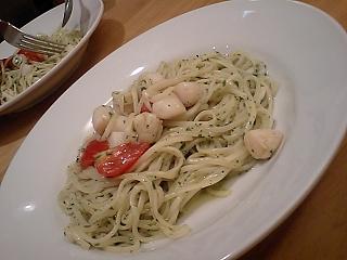 本日のパスタは、ホタテのバジルソース。パスタが細めの生パスタ!