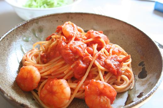 今日のお昼は、トマトソースパスタ