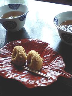 料理が出るまでのお茶請けで、お菓子とソバ茶が出る。おいしい!このお菓子っ!