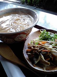 今日のうどんは、ごぼうとしめじのきんぴらとのこと。