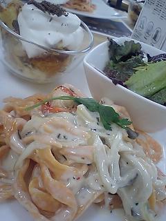 ・トマト風味の手打ちパスタ えびのハーブクリーム