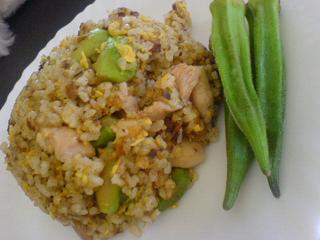 慌ててチャーハンに混ぜて炒める。かくして、ちょっと黒っぽいチャーハンが出来上がった。