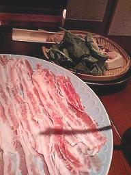 このお店の名物は、豚のつゆしゃぶ。うす~く切った豚肉を、お湯でしゃぶしゃぶ。そして、お店独自の出汁の効いたつゆにつけて食べる。