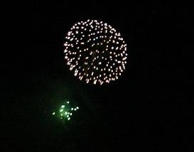 今日も、それまでに使われた蝶やハートや星、アサガオなどの花火も交えて、すごい勢いで上がりまくり、最後に金色一色の花火が夜空を覆った。