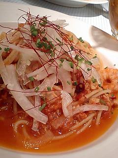 ツナとエビの韓国風トマトソースと、いちごのなめらかカスタードプリン♪