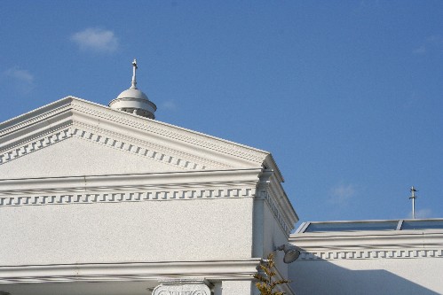 白くてお城のような建物と、青い空のコントラストが南の島にいるような錯覚を起こさせるとても素敵な式場です。