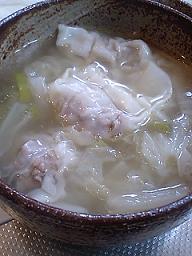 とりあえず白菜をタップリ入れた、ワンタンスープの出来上がり