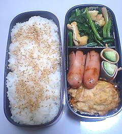 最近、夜に台所を片付けた後、お弁当の準備するのが面倒で(夕飯のおかずを多めに作ればいいけど、作ったら食べちゃうの・・・・)、おかずは朝作ってます。