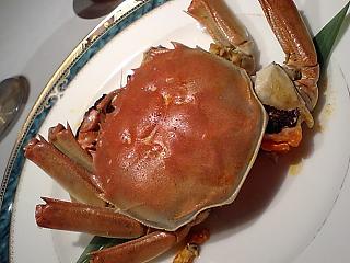 さっきまで生きていたというイカの刺身(まだ透明なの~!!吸盤がくっつくくっつく)、たっぷりのフカヒレスープ、車えびの野菜炒めに、牡蠣のグリル。そして、メインの上海蟹。