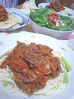 ・牛肉とチーズのトマトソースパスタ