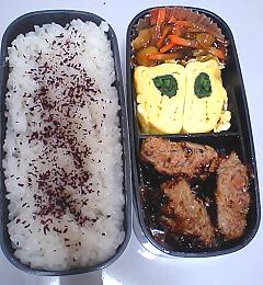 ハンバーグも、もう少しキレイに入れてたのに。。。