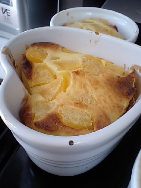 今回のデザートは、黄桃のクラフティ。