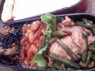 豆と干しえびの煮物は、よし君のお母さんが持たせてくれたもの。