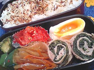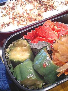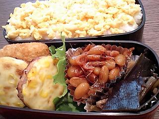 ちなみに上に乗っかってる肉巻きは、ご飯の方に無理矢理詰め込みました。