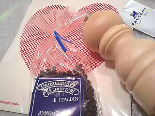 プジョーのペッパーミルと、粒胡椒、そして私が欲しいー!と前から狙っていたスポンジワイプ。